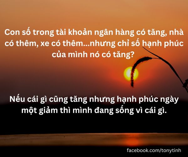 Mỗi gia đình, có chăng, chúng ta nên tự có chỉ số đo lường hạnh phúc, rằng năm nay chúng ta có hạnh phúc hơn, hài lòng trong cuộc sống hơn so với năm trước. Chỉ số đó là chỉ số đáng để tổng kết cuối năm, đáng để làm mục tiêu phát triển cho năm sau. Nhưng chỉ số đo lường này chúng ta đo lường bằng cái gì. Nó đâu thể đo có bằng con số thu nhập, bằng chiếc xe, bằng cái nhà, nó đâu có nằm trong ngân hàng đâu mà mình đo.