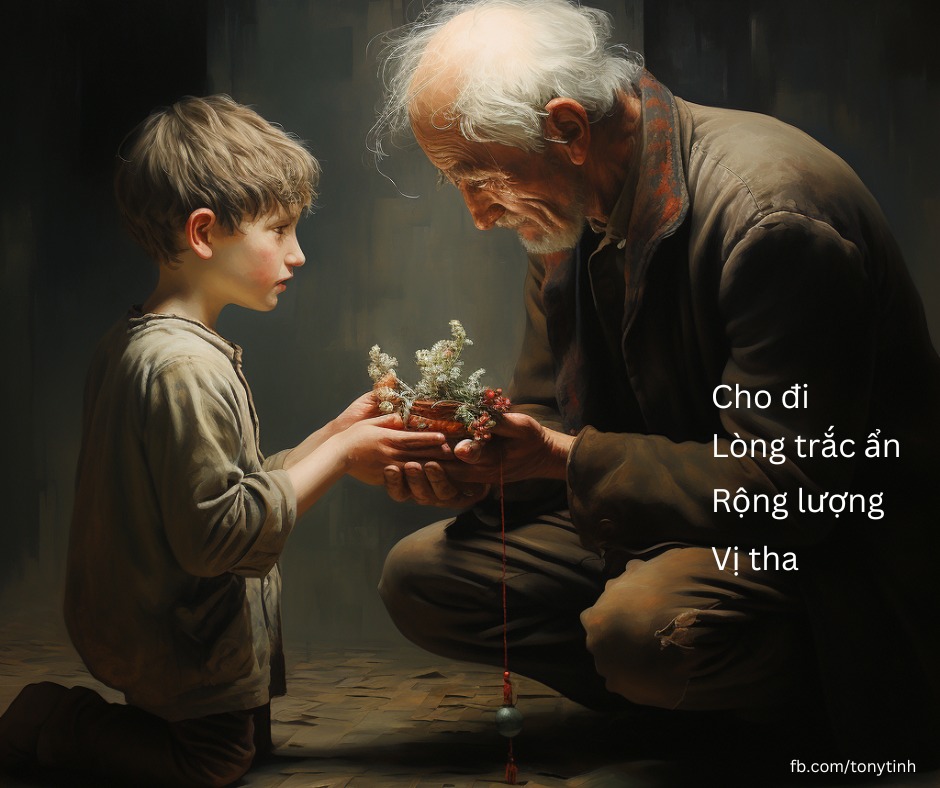 Một người họ thấy ai đó bị té xe trên đường, họ quan tâm, dừng lại để đỡ người ấy lên, đó cũng là thể hiện của sự quan tâm và cho đi. Ông lão ăn xin xin được một ổ bánh mì, cho đồng nghiệp mình nửa ổ, đó cũng là lòng trắc ẩn.