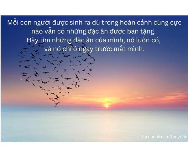 Mỗi con người được sinh ra dù trong hoàn cảnh cùng cực nào vẫn có những đặc ân được ban tặng. Hãy tìm những đặc ân của mình, nó luôn có, và nó chỉ ở ngay trước mắt mình.