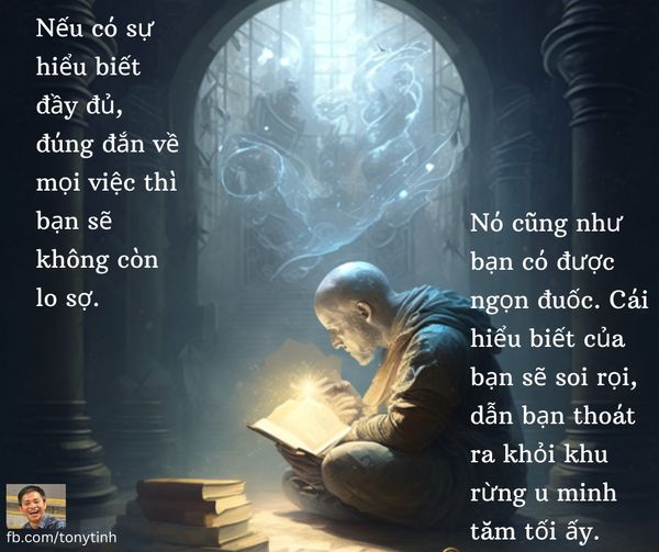 Trước đây mình không biết bơi nên mình sợ sông nước. Sau khi mình biết bơi thì mình không còn sợ nữa. ‘’Cái biết nó sẽ giết cái sợ’’. Cái sợ cũng như mình đi trong màn đêm tăm tối. ‘’Cái biết’’ như ngọn đuốc soi sáng, xua đi màn đêm u minh, cho mình thấy những gì mình chưa thấy, giúp mình biết những gì mình chưa biết.