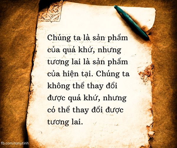 Chúng ta là sản phẩm của quá khứ nhưng chúng ta không nhất thiết phải là tù nhân của nó. Cách làm việc trong quá khứ, cách suy nghĩ trong quá khứ, thói quen cũ trong quá khứ, lối tư duy cũ trong quá khứ là những gì định hình chúng ta ở hiện tại. Chúng ta có quyền lựa chọn để thoát khỏi cái nhà tù luẩn quẩn đó.