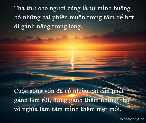 Cuộc sống đã có nhiều cái cần phải gánh lắm rồi, đừng gánh thêm những thứ vô nghĩa làm tâm mình thêm mệt mỏi.