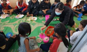 Mặc dù đang rất tất bật, nhưng trước cảnh tượng các em ăn cơm với con sùng đất, thêm vào đó, các thầy còn bảo ‘gạo giờ cũng thiếu nữa’, nên Quỹ lại tiếp tục triển khai thêm chương trình “Bữa cơm cho em”, mong hỗ trợ thêm gạo và thức ăn để các em được cái no mà đi học.