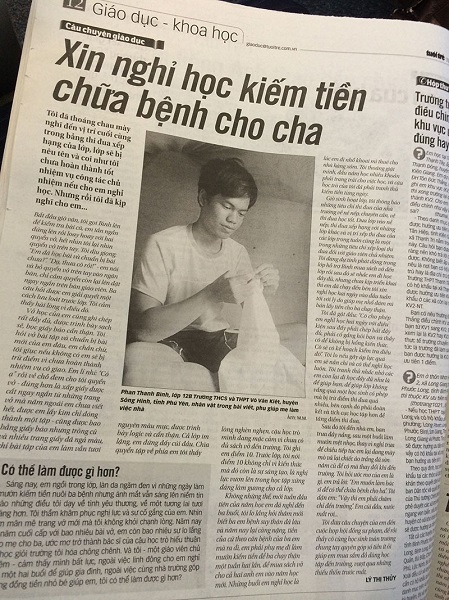 IMM Group: Qua bài viết của cô giáo chủ nhiệm lớp 12B, không ít người đã xúc động và thương cảm trước hoàn cảnh khó khăn của Phan Thanh Bình. Để có tiền chữa bệnh suy thận cho ba và mua sách vở đầu năm học mới, em phải xin nghỉ học đi nhổ khoai mì và làm mướn phụ mẹ mỗi tuần. Trong lúc bạn bè đang tập trung cho năm học cuối cấp thì bản thân em vẫn phải tranh thủ kiếm tiền từng ngày.